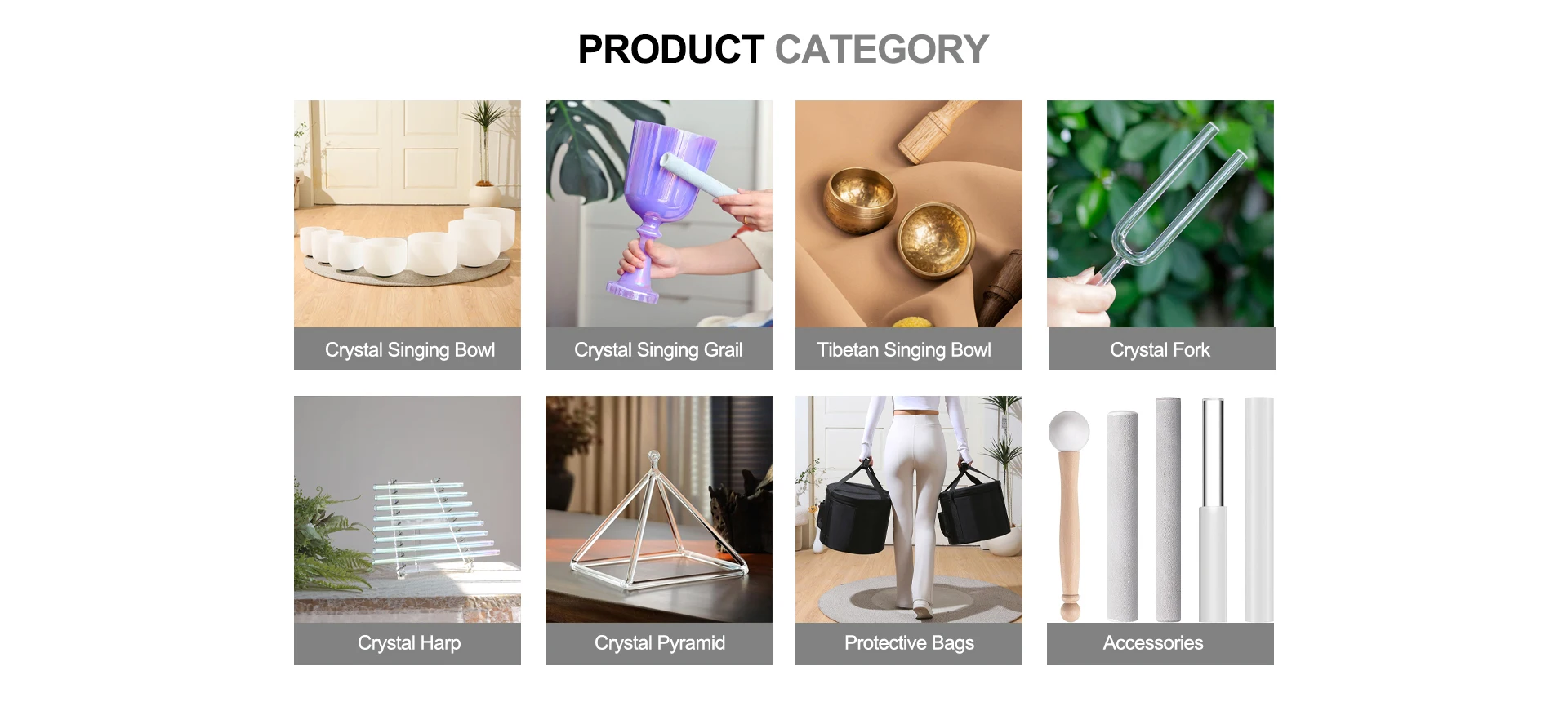 ผลิตภัณฑ์หลัก:ชามร้องเพลงคริสตัล, ชามเสียง, ชามดนตรี, เบ้าควอตซ์, ชามคริสตัล